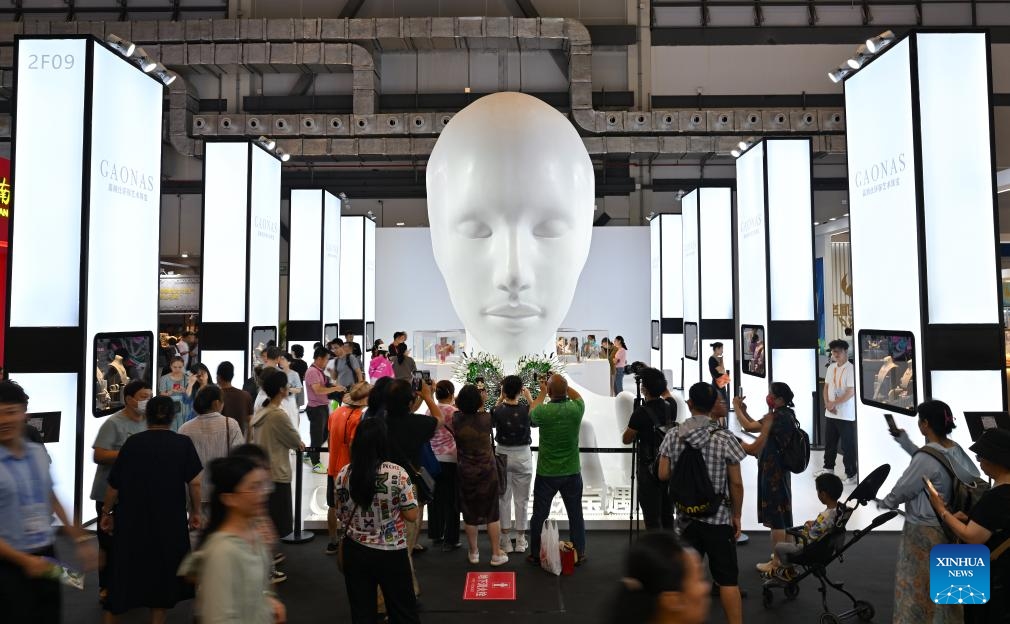 People visit the booth of Gaonas during the fourth China International Consumer Products Expo in Haikou, capital city of south China's Hainan Province, April 17, 2024. The fourth China International Consumer Products Expo, which lasts from April 13 to 18, is China's only national-level exhibition featuring consumer products and is also the largest consumer expo in the entire Asia-Pacific region. (Xinhua/Guo Cheng)