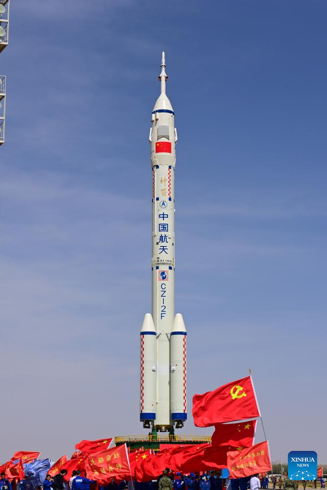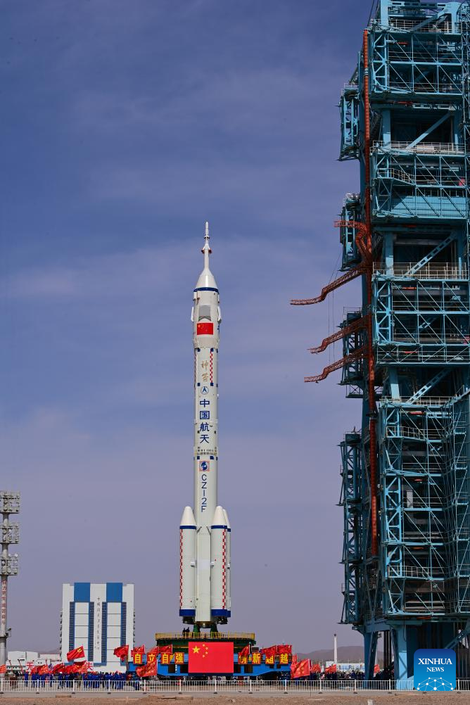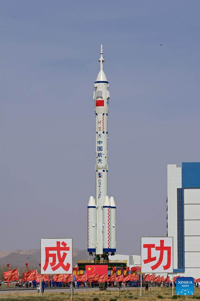 BEIJING, April 17 (Xinhua) -- The combination of the Shenzhou-18 crewed spaceship and a Long March-2F carrier rocket has been transferred to the launching area, the China Manned Space Agency (CMSA) said on Wednesday.