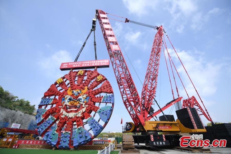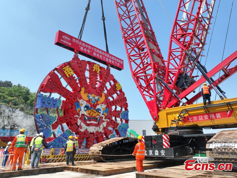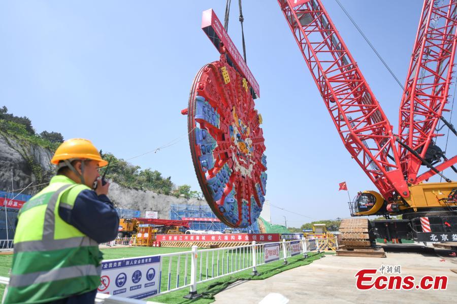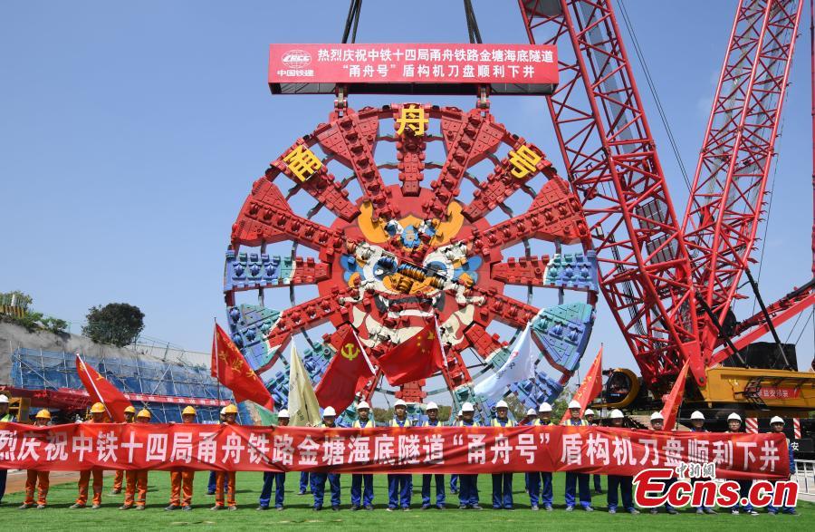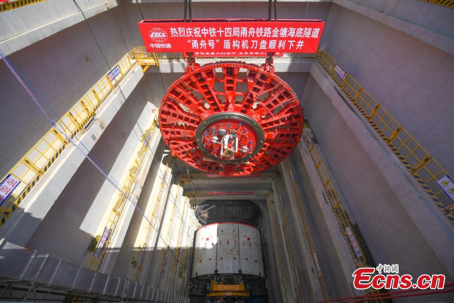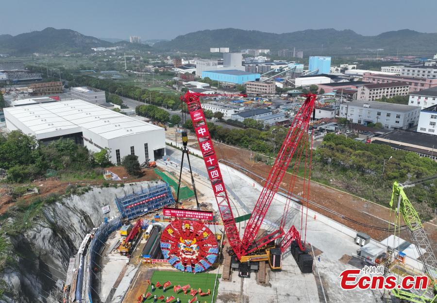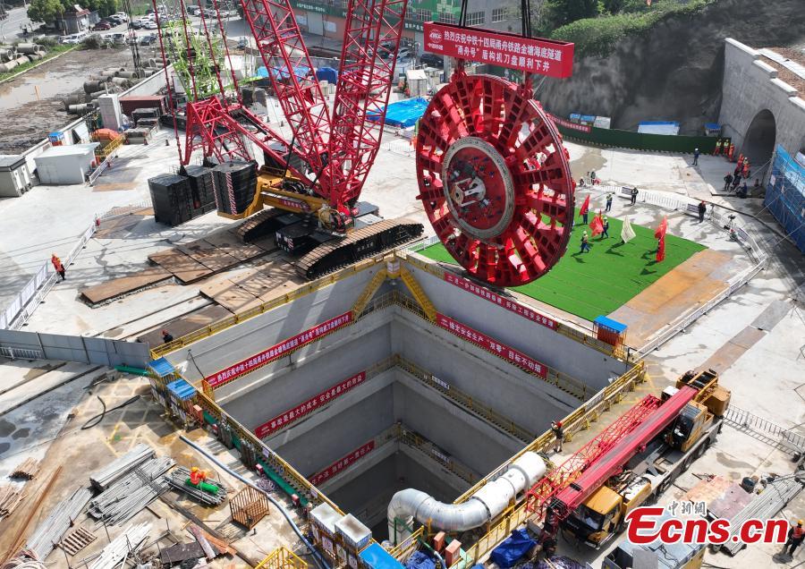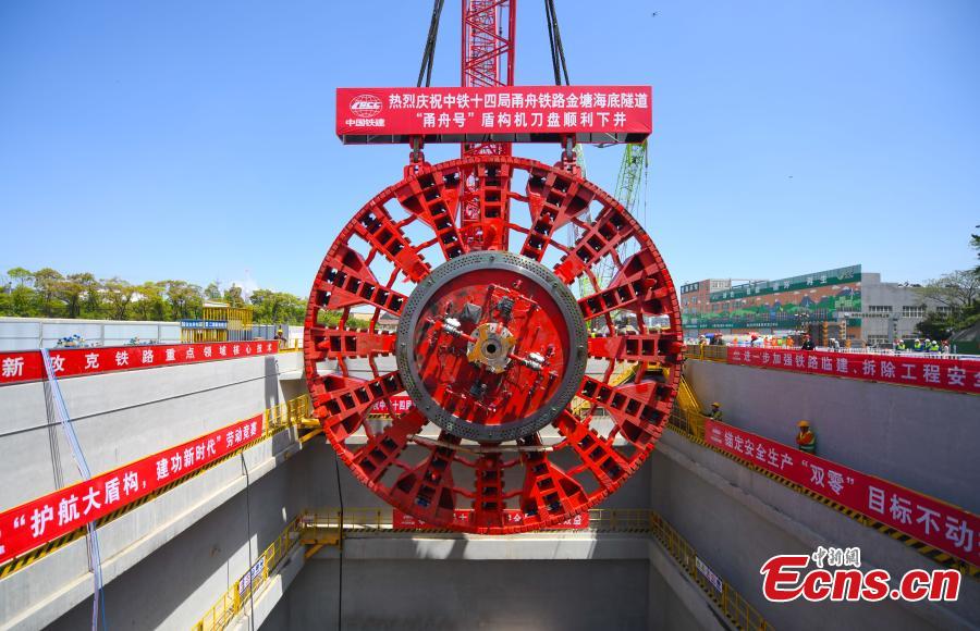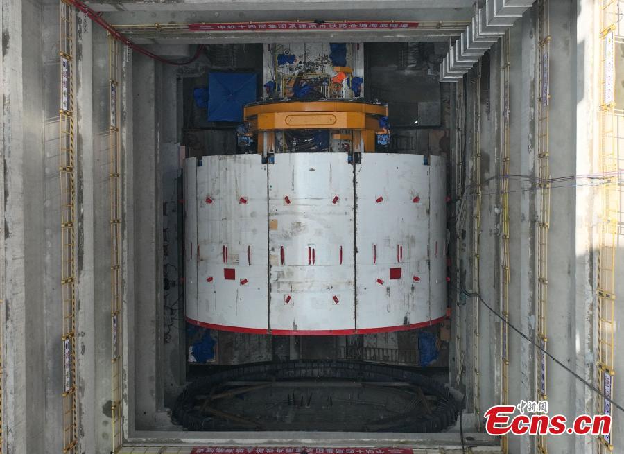 Photo shows the installation site of tunnel boring machine Yongzhou at the construction site of the world's longest undersea high-speed railway tunnel in Ningbo, east China's Zhejiang Province, April 18, 2024. (Photo: China News Service/Wang Gang)