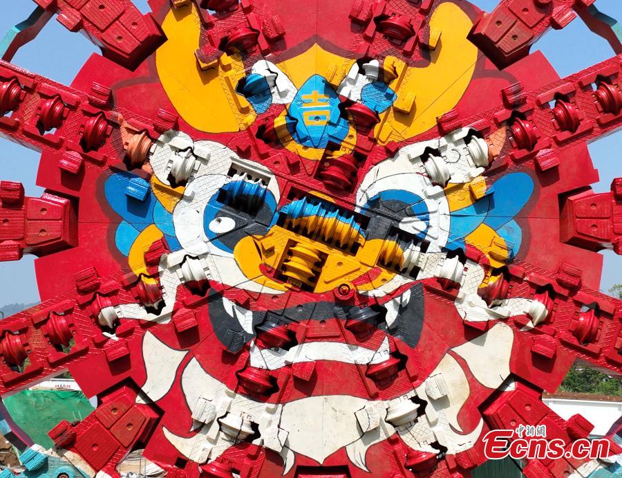 A dragon pattern is seen on the tunnel boring machine Yongzhou at the construction site of the world's longest undersea high-speed railway tunnel in Ningbo, east China's Zhejiang Province, April 18, 2024. (Photo: China News Service/Wang Gang)