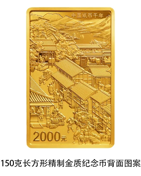 One of the gold coins will contain 150 grams of pure gold, and measure 64 millimeters by 40 millimeters. Its reverse will feature a combination of images showing typical street scenes, business activities, and characteristic local landscapes of the southwestern Chinese city of Chengdu in the Northern Song Dynasty (960-1127). The country's earliest official paper currency was first used in Chengdu in the Northern Song Dynasty.