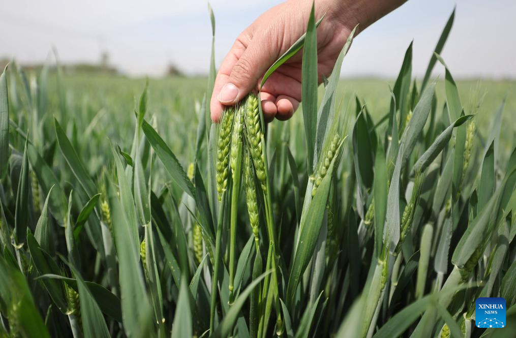 A farmer checks the growth of wheat in a field in Sucun Township of Yinan County, Linyi City, east China's Shandong Province, April 19, 2024. Friday marks Guyu, or Grain Rain, which is the sixth of the 24 traditional Chinese solar terms, signifying the onset of the rainy season, a favorable time for planting and the growth of crops. (Photo by Wang Yanbing/Xinhua)