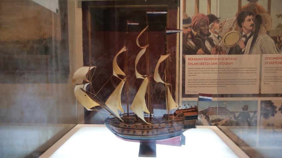 This photo taken on April 14, 2024 shows a ship model of the Dutch East India Company during the colonial period displayed in the Jakarta History Museum. (Xinhua/Ye Pingfan)