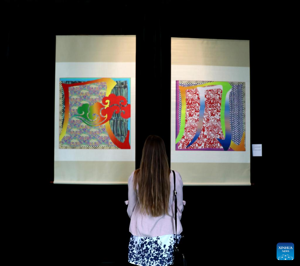 A woman attends an event named "Evolution of Chinese Characters" in London, Britain, April 20, 2024. A special exhibition of Chinese characters was launched here on Saturday to celebrate the Chinese Language Day of the United Nations (UN). (Xinhua/Li Ying)