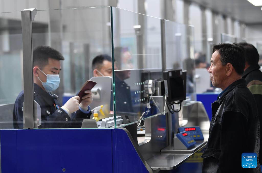 Travelers go through clearance procedures before entering the Horgos International Border Cooperation Center on the China-Kazakhstan border in Horgos, northwest China's Xinjiang Uygur Autonomous Region, April 18, 2024. According to the statistics of the Horgos entry-exit border checkpoint, a total of over 1.34 million people have checked in and out of the center this year as of April 19. (Xinhua/Zhao Ge)