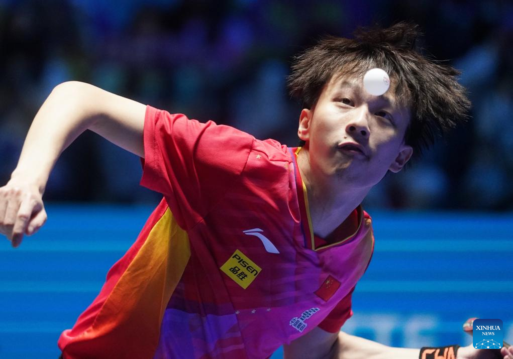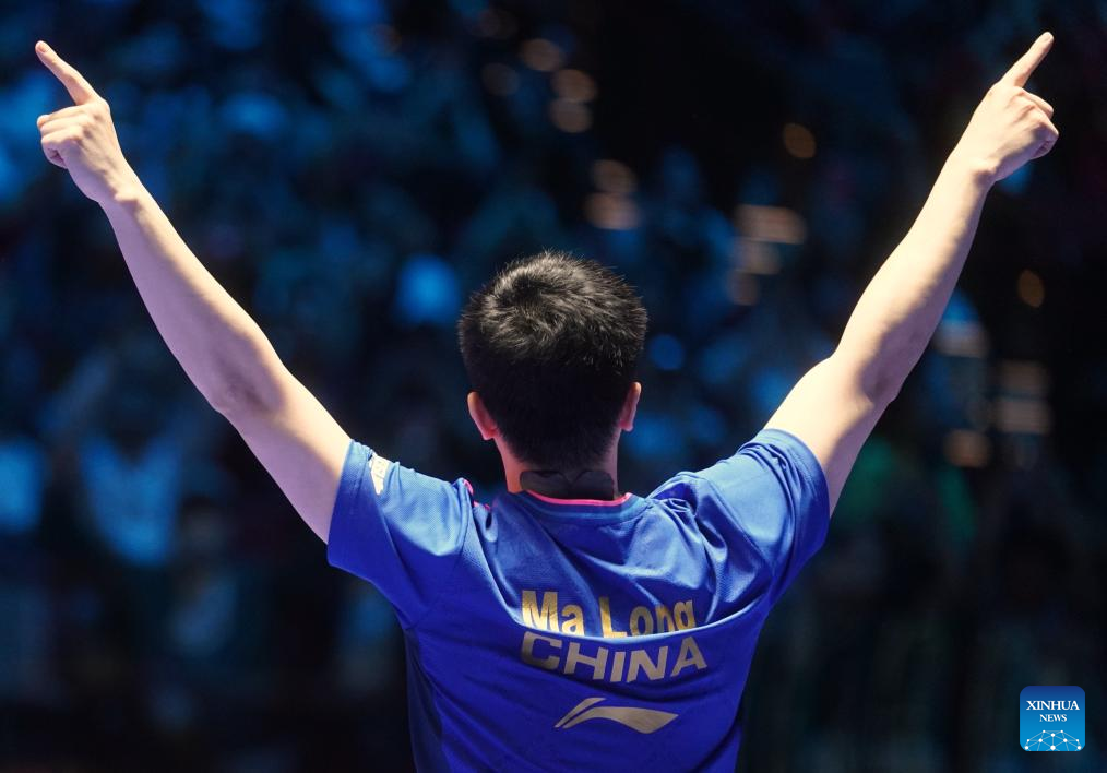 MACAO, April 21 (Xinhua) -- China's Ma Long completed a marvellous comeback win in the ITTF World Cup men's final as he beat teammate Lin Gaoyuan 4-3, while Sun Yingsha also overcame Wang Manyu in a seven-game thriller to win her first World Cup title here on Sunday evening.