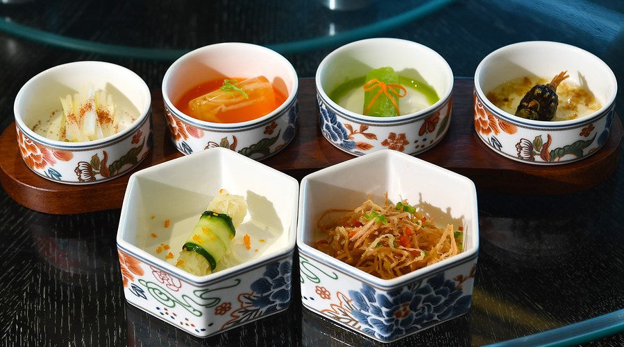 Photo taken on April 8, 2024 shows dishes served at the CVIEW restaurant at M+ Museum in West Kowloon Cultural District in south China's Hong Kong. (Xinhua/Chen Duo)