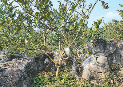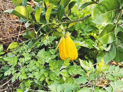 Fingered citron trees grow amid rock crevices. (People's Daily Overseas Edition/Xiong Jian)