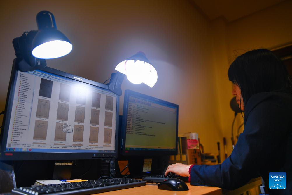 Zheng Shanji edits the catalog information of microfilm at Jilin Provincial Library in Changchun, northeast China's Jilin Province, April 22, 2024. (Xinhua/Xu Chang)