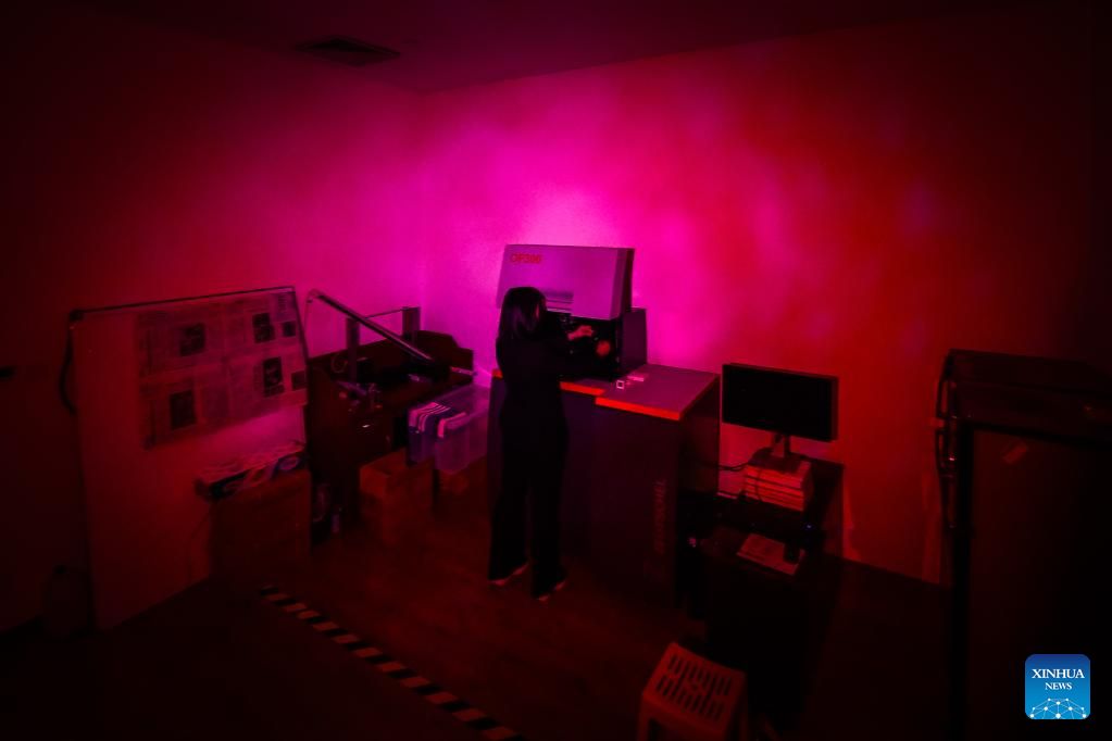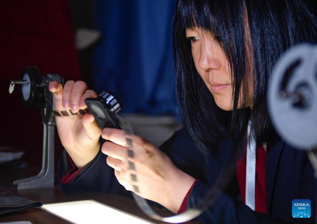 Zheng Shanji develops microfilm at Jilin Provincial Library in Changchun, northeast China's Jilin Province, April 22, 2024. (Xinhua/Xu Chang)