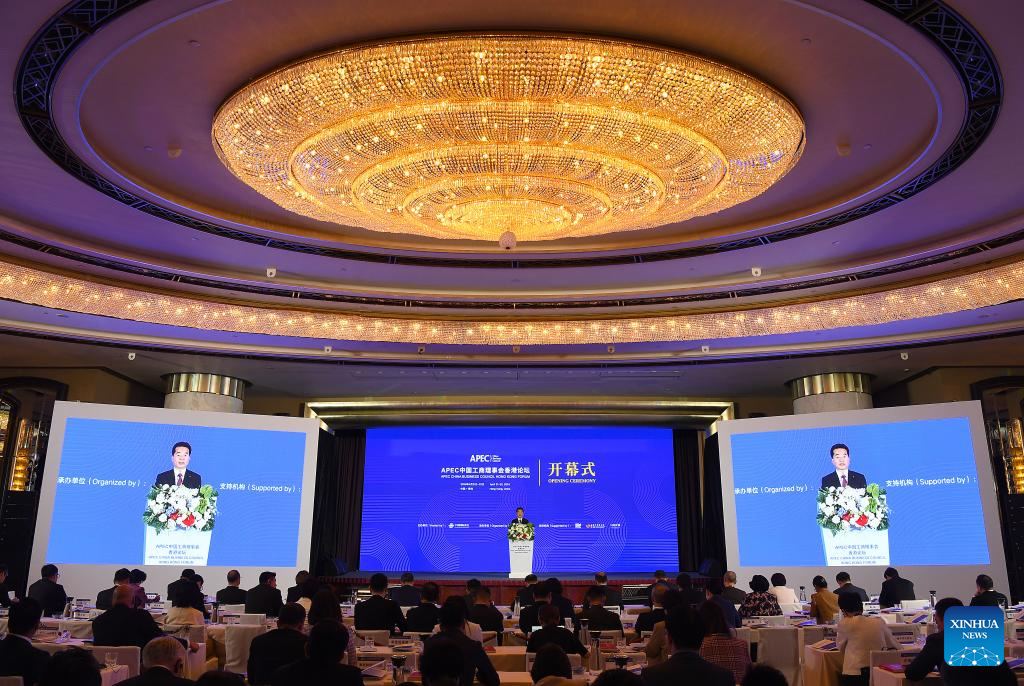 HONG KONG, April 22 (Xinhua) -- The APEC China Business Council Hong Kong Forum opened on Monday in Hong Kong with participants discussing the stabilizing and smoothing of global industrial and supply chains and promoting sustainable development.