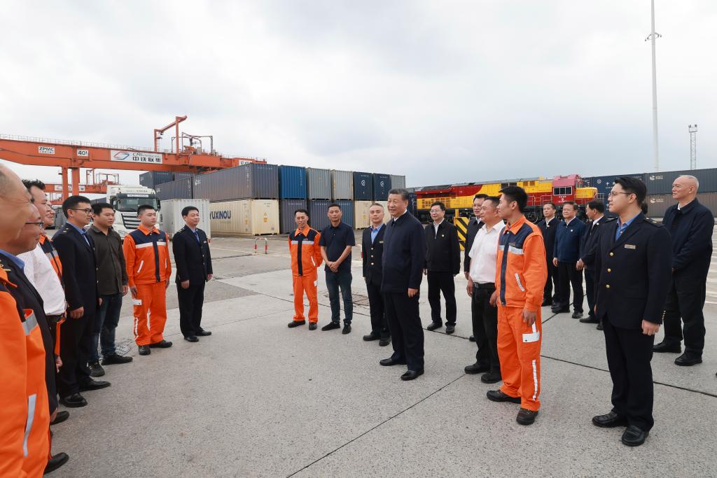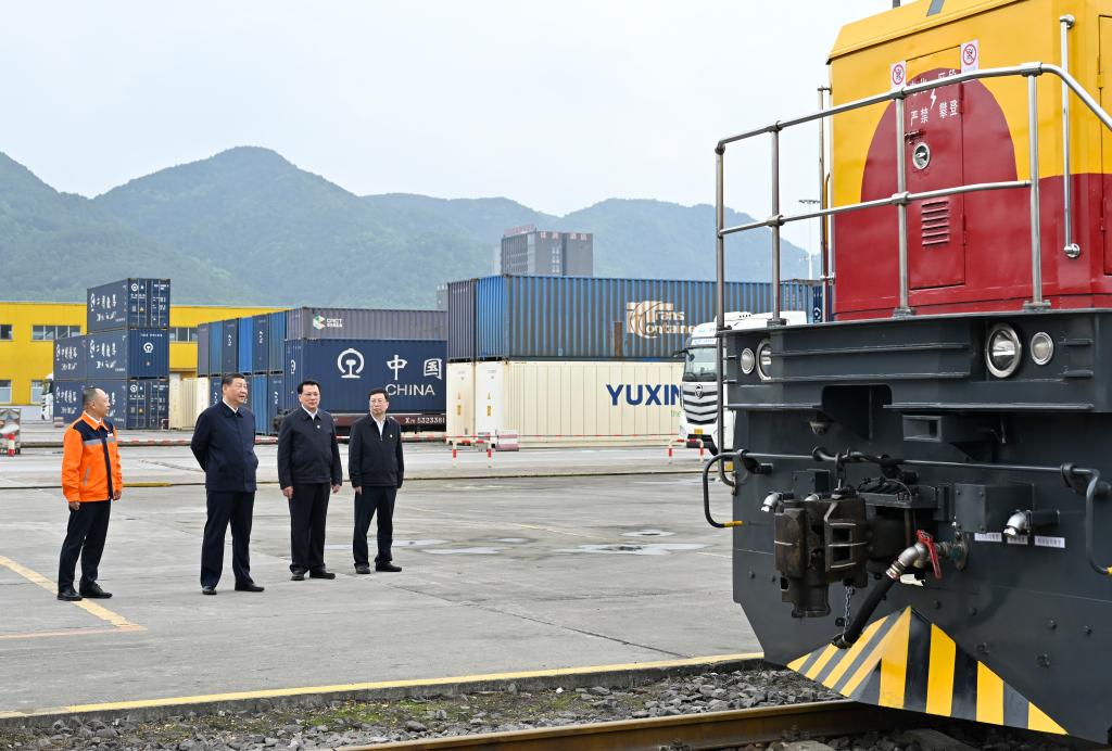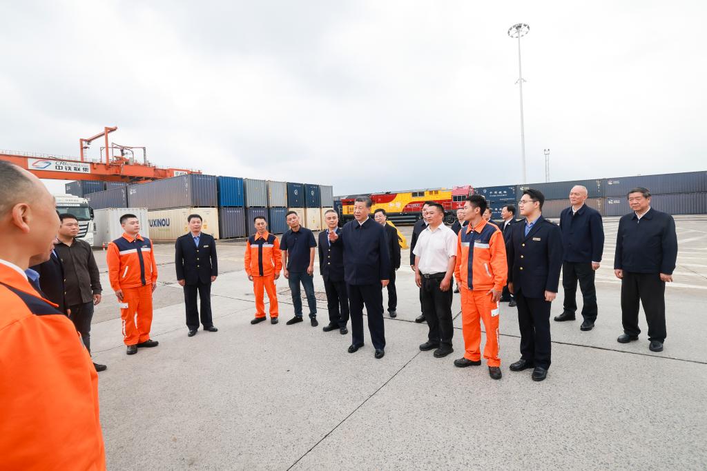 Chinese President Xi Jinping, also general secretary of the Communist Party of China Central Committee and chairman of the Central Military Commission, visits an international logistics hub park in southwest China's Chongqing Municipality, April 22, 2024. Xi inspected southwest China's Chongqing Municipality from Monday to Tuesday. (Xinhua/Wang Ye)