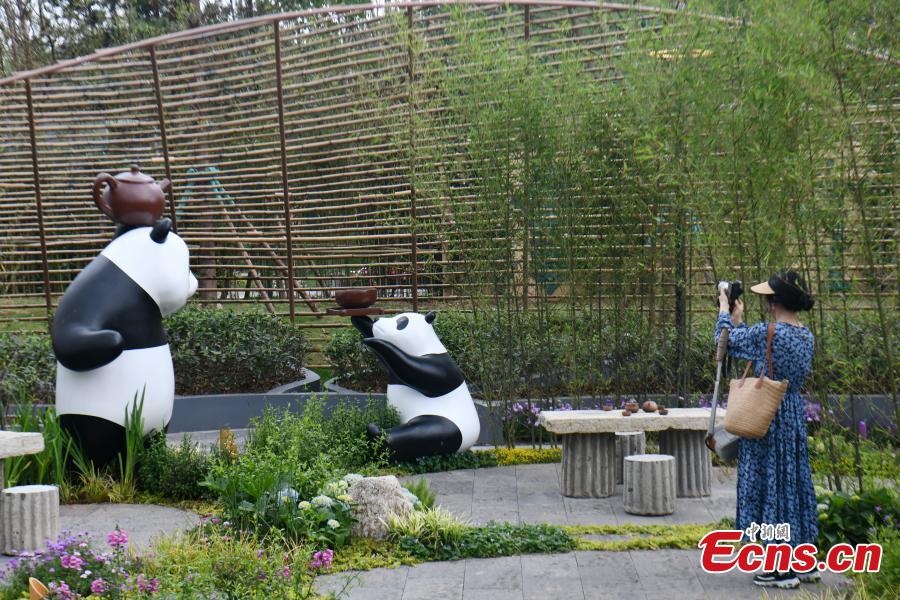 Mascots are displayed at the main venue of the International Horticultural Exhibition 2024 in Chengdu, southwest China's Sichuan Province, April 22, 2024. (Photo: China News Service/Zhang Lang)