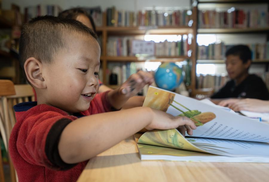"Growing up in the mountainous areas, some of the children become introverted due to the lack of parental companionship, but books can offer them a spiritual experience," he said, adding that last year, eight children from the village were admitted to university.