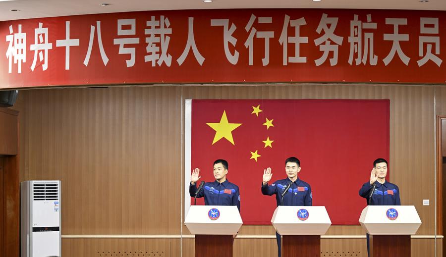 The Shenzhou-18 crewed spaceship will be launched at 8:59 p.m. Thursday (Beijing Time) from the Jiuquan Satellite Launch Center in northwest China, said Lin Xiqiang, deputy director of the CMSA.