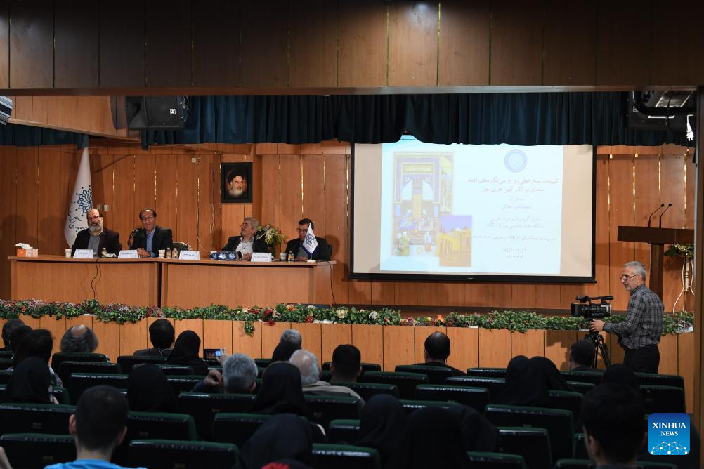 A conference to commemorate the prominent Iranian poet and prose writer Saadi Shirazi is held in Tehran, Iran, on April 22, 2024. Iranian experts have highlighted the significant role culture can play in contributing to the development of Iran-China relations in various fields. (Xinhua/Shadati)