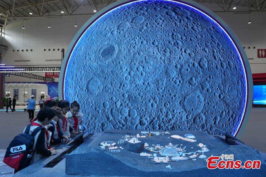 A group of young journalists visit the exhibition to celebrate the Space Day of China in Wuhan, Central China's Hubei Province, April 23, 2024. (Photo: China News Service/Cui Nan)