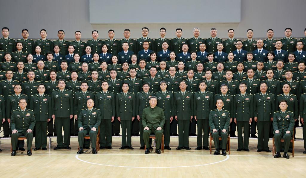Chinese President Xi Jinping, also general secretary of the Communist Party of China Central Committee and chairman of the Central Military Commission, meets with representatives of officers and soldiers of the Army Medical University and has a group photo with them on April 23, 2024. Xi inspected the Army Medical University on Tuesday. (Xinhua/Li Gang)