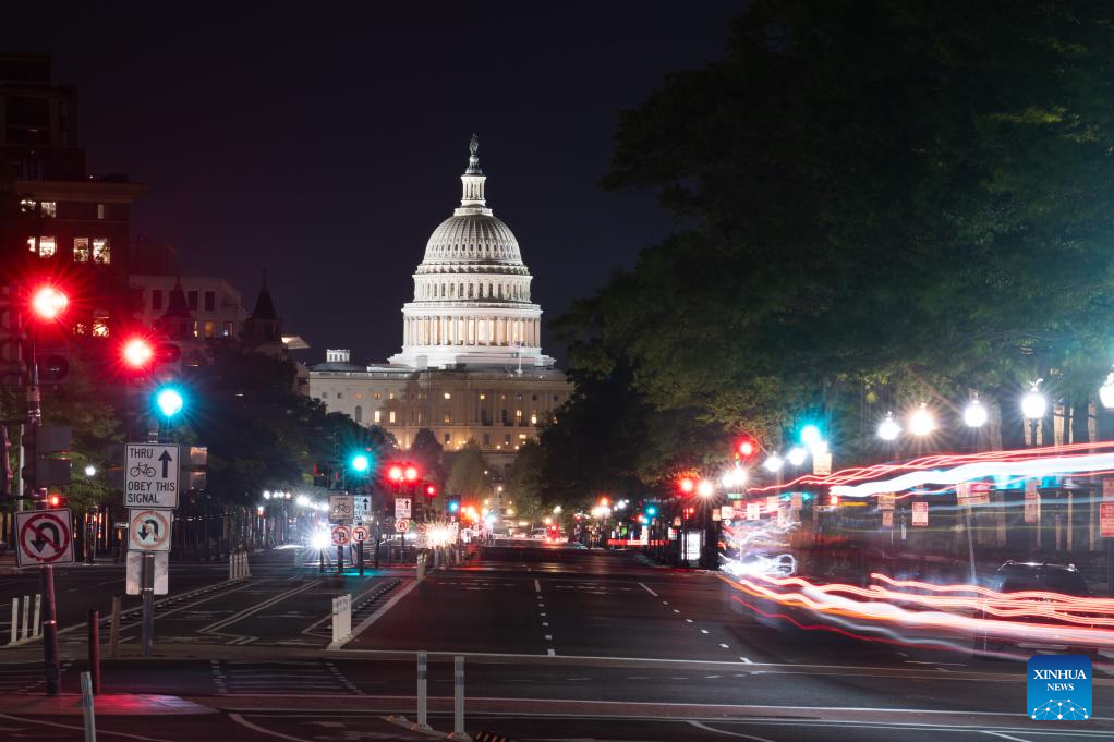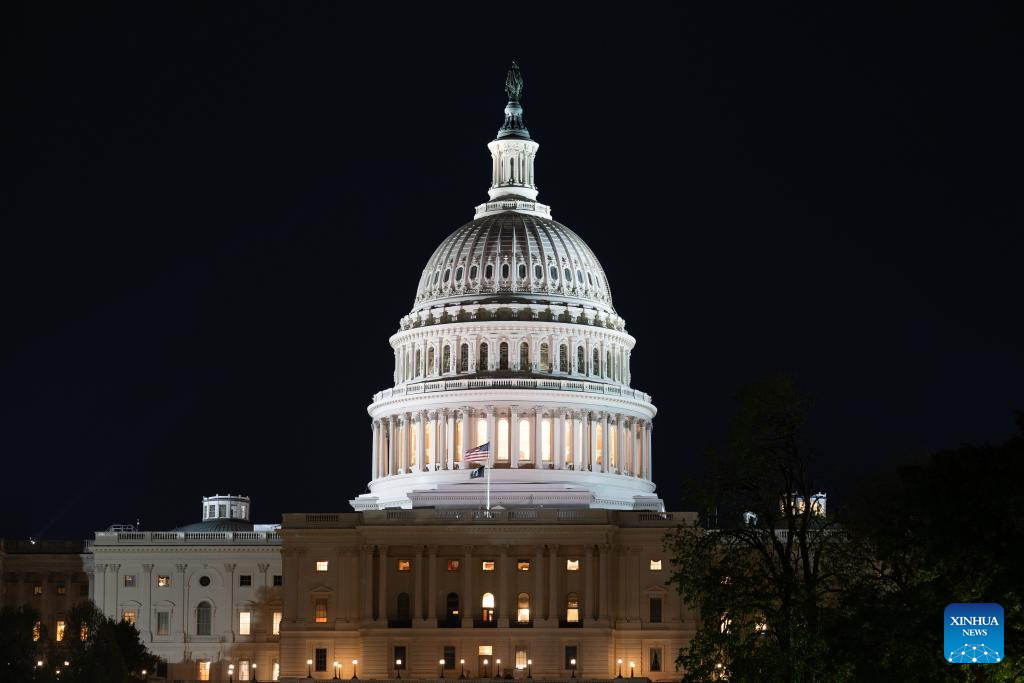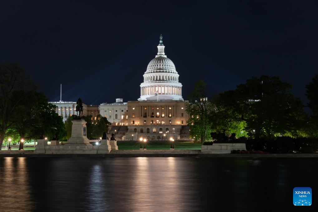 This photo taken on April 23, 2024 shows the U.S. Capitol building in Washington, D.C., the United States. The U.S. Senate on Tuesday voted to pass a foreign aid package that included long-stalled aid for Israel and Ukraine. (Xinhua/Liu Jie)