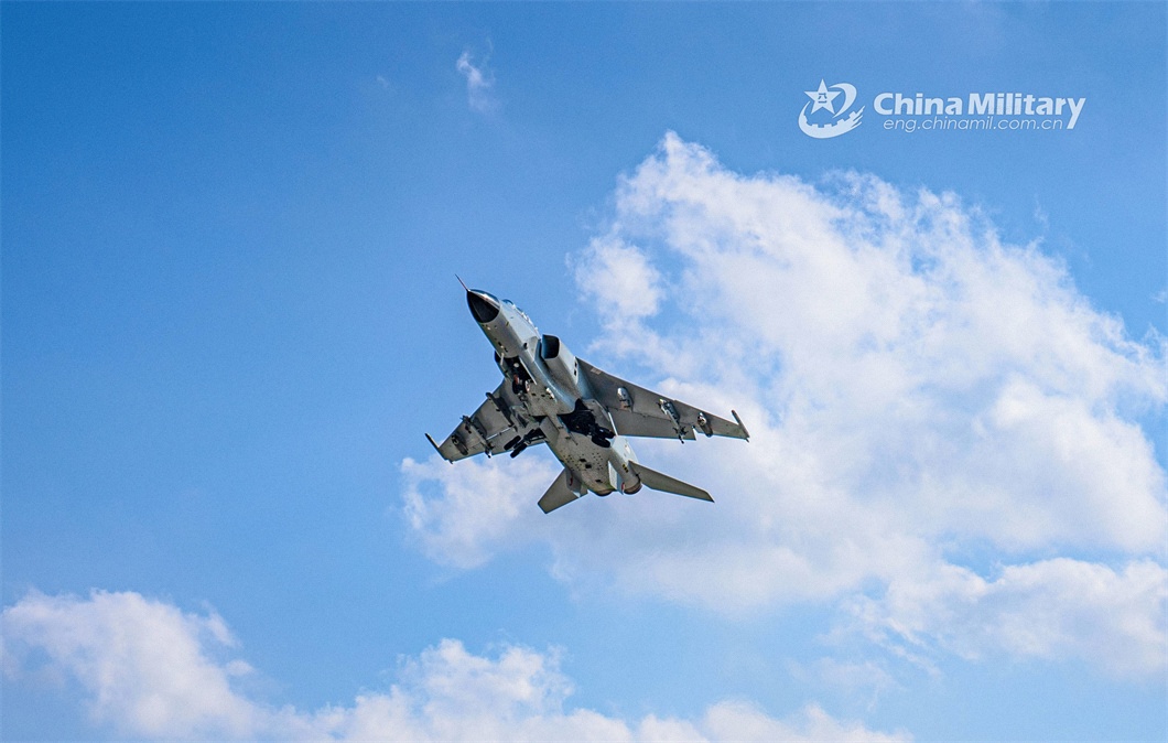 A fighter-bomber attached to an aviation brigade with the air force under the PLA Northern Theater Command soars in the sky during a live-fire training exercise on April 8, 2024. (eng.chinamil.com.cn/Photo by Zhang Yue)