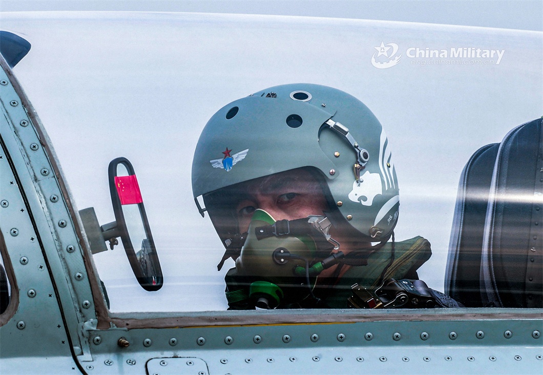 A pilot assigned to an aviation brigade with the air force under the PLA Northern Theater Command gets ready in the cockpit before a live-fire flight training exercise on April 8, 2024. (eng.chinamil.com.cn/Photo by Zhang Yue)