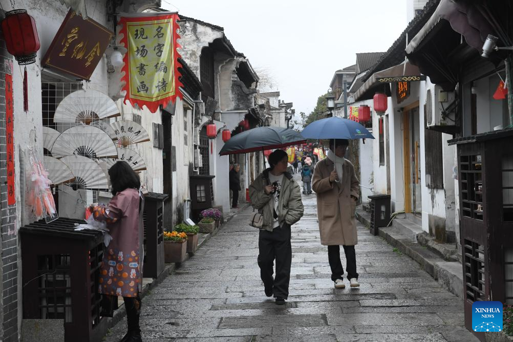 Tourists visit Cangqiao Straight Street in Shaoxing, east China's Zhejiang Province, Feb. 20, 2024. (Xinhua/Weng Xinyang)?