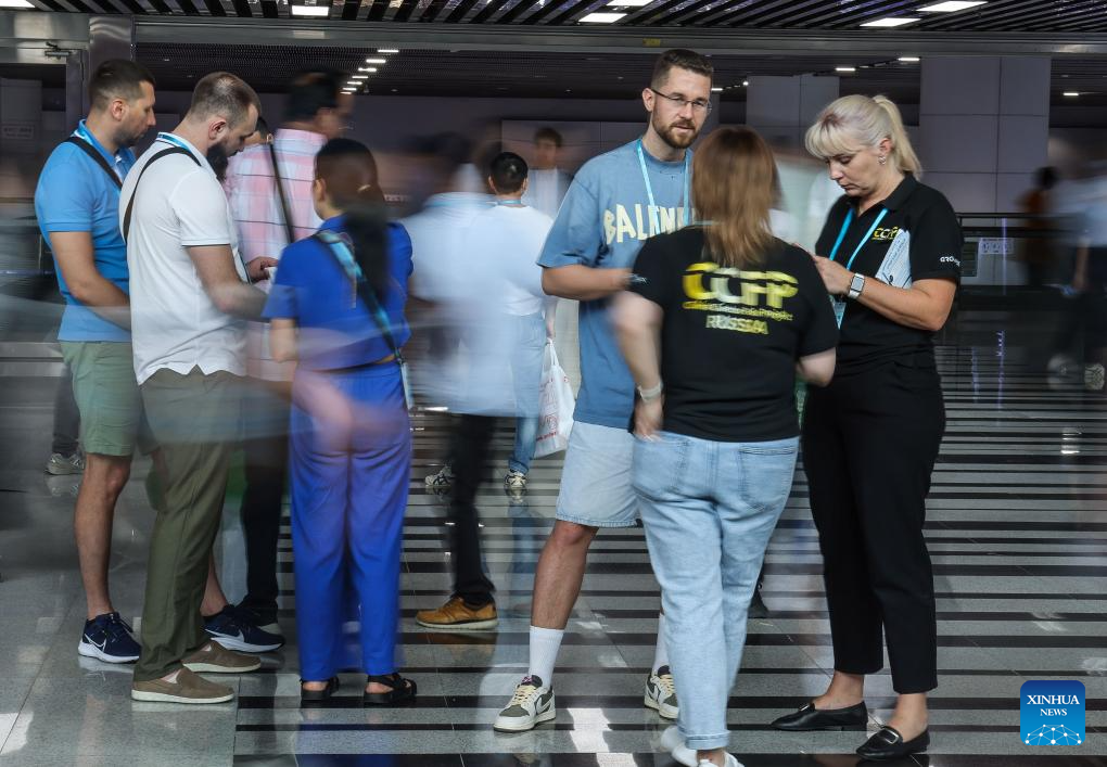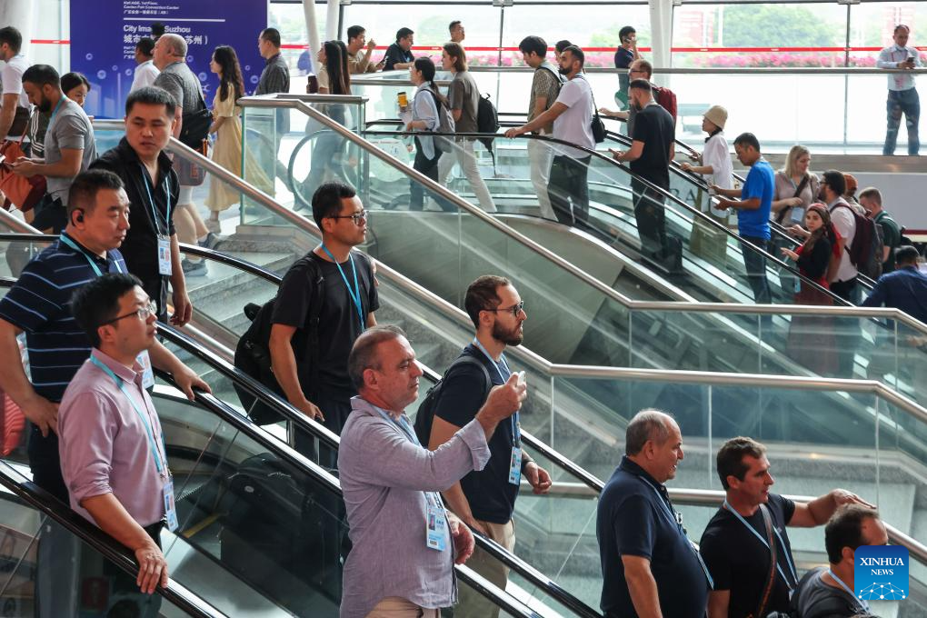 Purchasers are pictured during the 135th session of the China Import and Export Fair in Guangzhou, south China's Guangdong Province, April 24, 2024. As of 5:00 p.m. on Tuesday, a total of 172,901 purchasers from 214 countries and regions have physically attended the 135th session of the China Import and Export Fair, commonly known as the Canton Fair, an increase of 21.6 percent over the same period last year. (Xinhua/Liu Dawei)