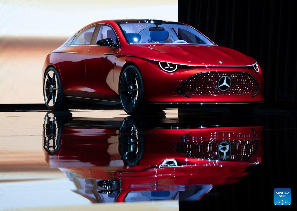 This photo taken on April 25, 2024 shows a Mercedes-Benz CLA-Class concept car displayed at the 2024 Beijing International Automotive Exhibition in Shunyi District, Beijing, capital of China. The exhibition opened here on Thursday and will last till May 4. (Xinhua/Cai Yang)