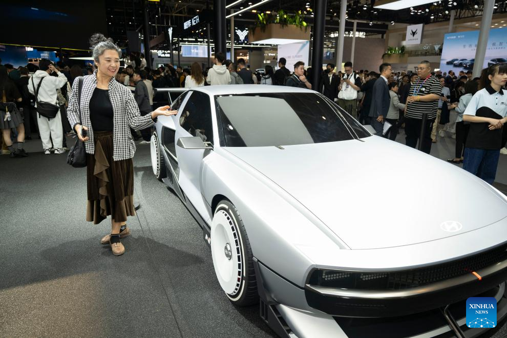 People visit the 2024 Beijing International Automotive Exhibition in Shunyi District, Beijing, capital of China, April 25, 2024. The exhibition opened here on Thursday and will last till May 4. (Xinhua/Cai Yang)
