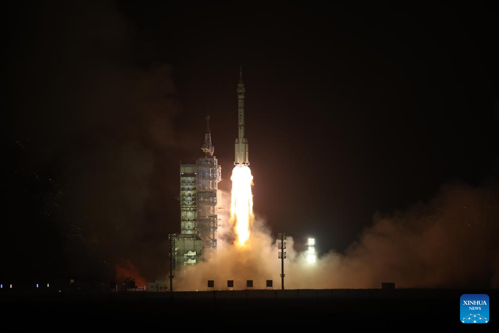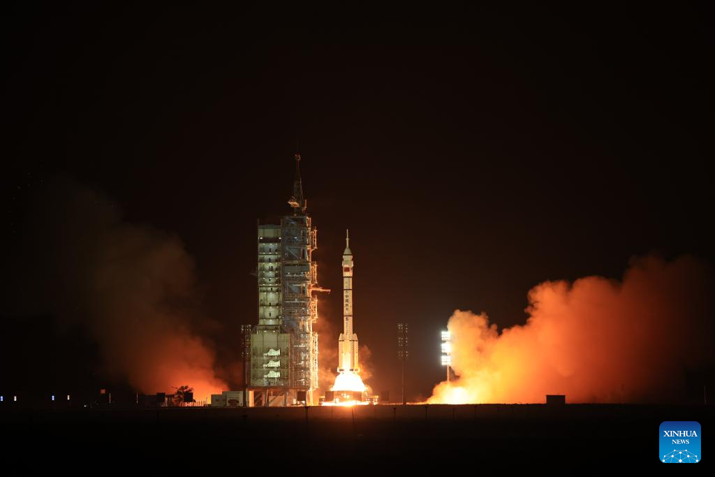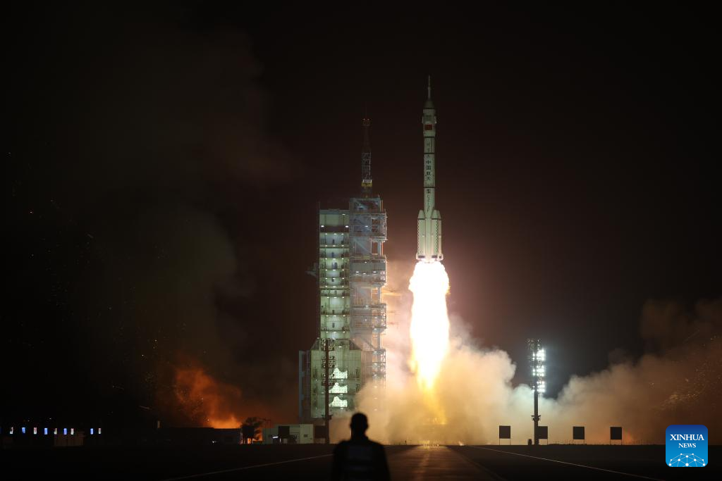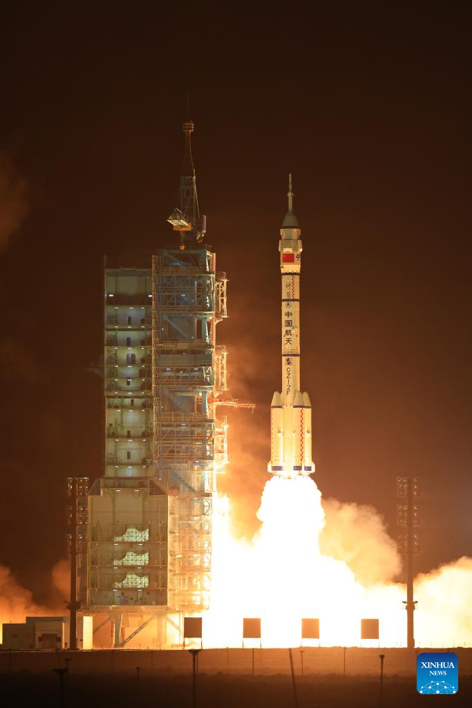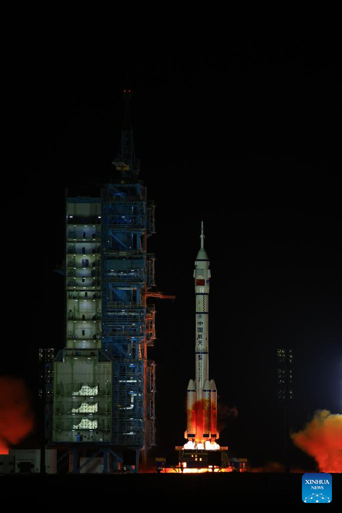 The Shenzhou-18 manned spaceship, atop a Long March-2F carrier rocket, is launched from the Jiuquan Satellite Launch Center in northwest China, April 25, 2024. (Xinhua/Jin Liwang)