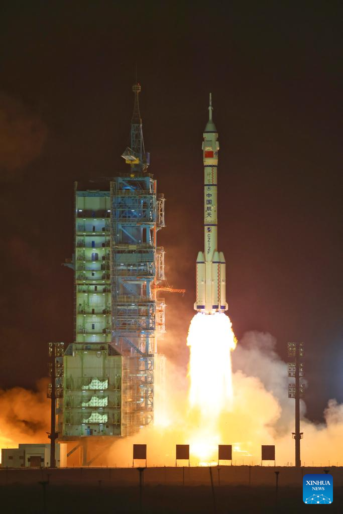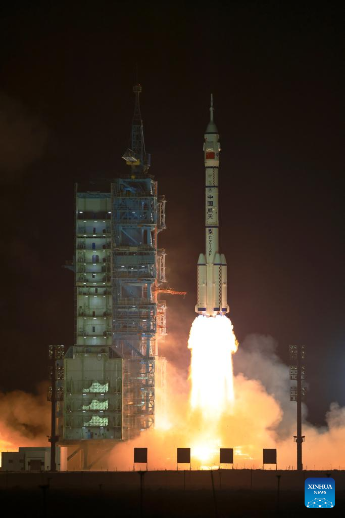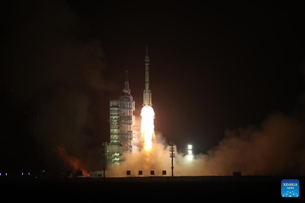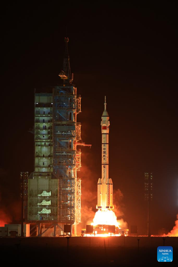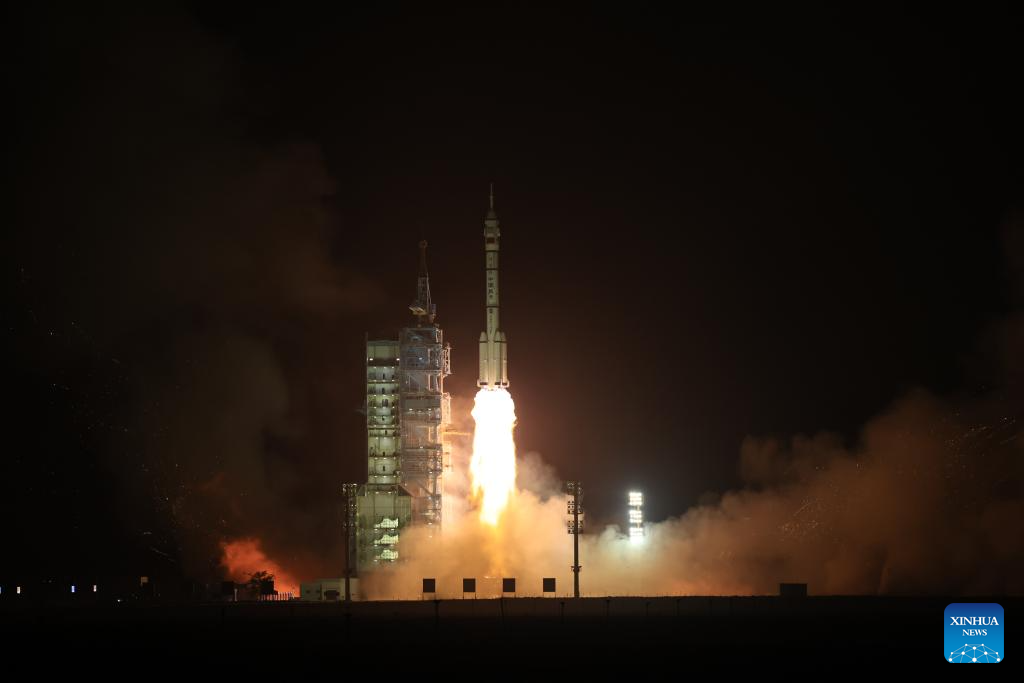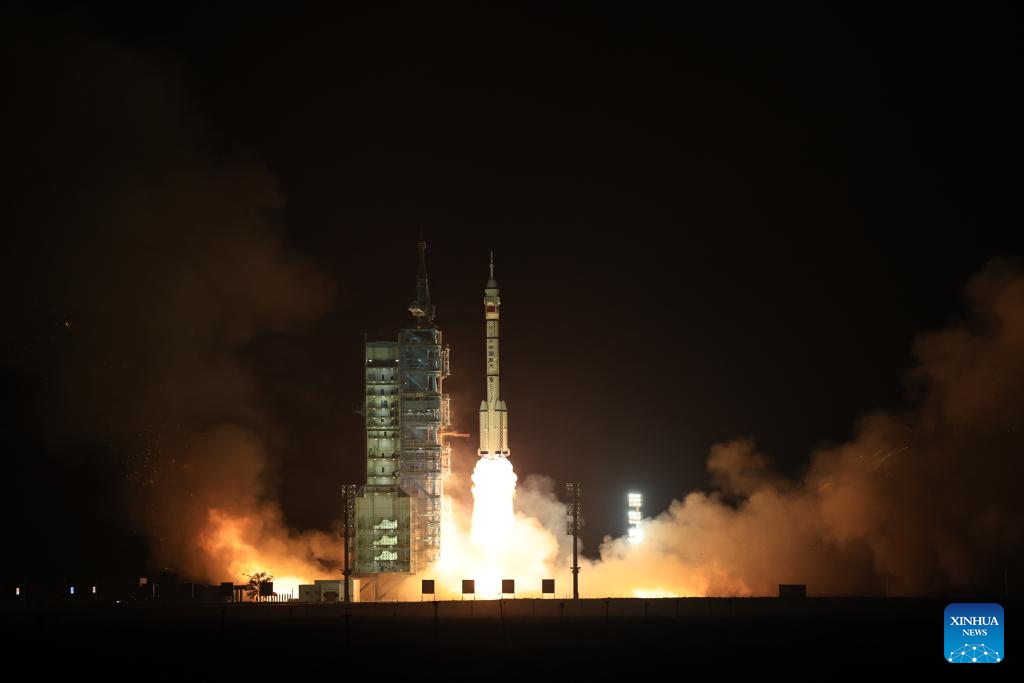The Shenzhou-18 manned spaceship, atop a Long March-2F carrier rocket, is launched from the Jiuquan Satellite Launch Center in northwest China, April 25, 2024. (Xinhua/Jin Liwang)