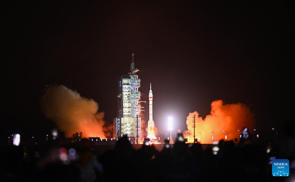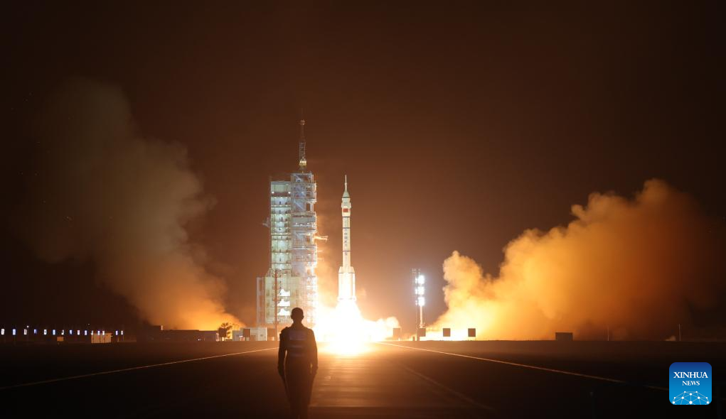 The Shenzhou-18 manned spaceship, atop a Long March-2F carrier rocket, is launched from the Jiuquan Satellite Launch Center in northwest China, April 25, 2024. (Xinhua/Li Gang)