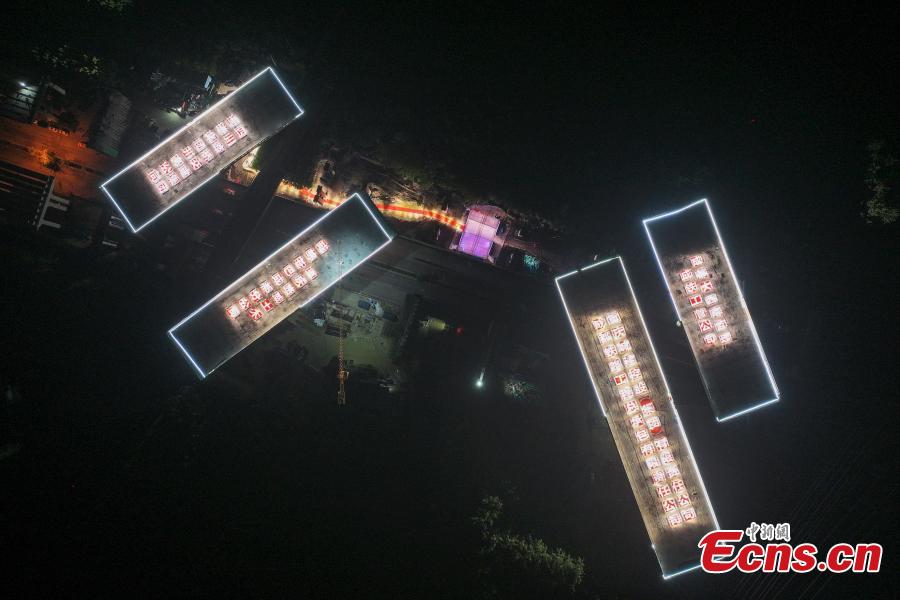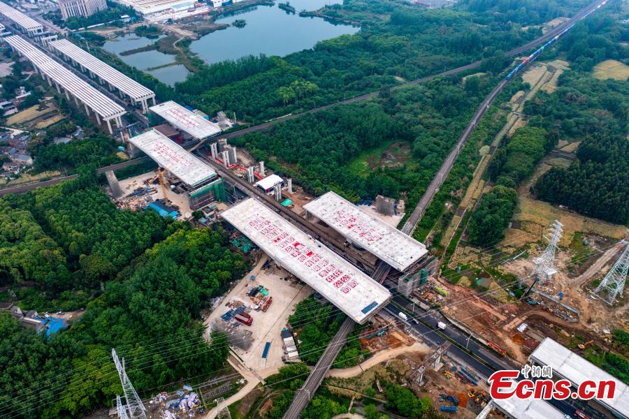 Aerial view of the swivel bridges on the Chengdu to Mianyang section of the G5 Beijing-Kunming Expressway after their rotations in Chengdu, southwest China's Sichuan Province, April 24, 2024. (Photo: China News Service/Liu Zhongjun)