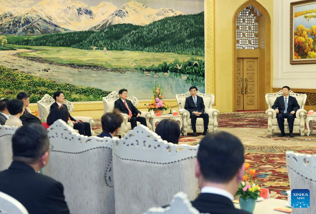 BEIJING, April 27 (Xinhua) -- Wang Huning, chairman of the Chinese People's Political Consultative Conference National Committee, on Saturday met with a visiting Chinese Kuomintang (KMT) party delegation led by Fu Kun-chi.