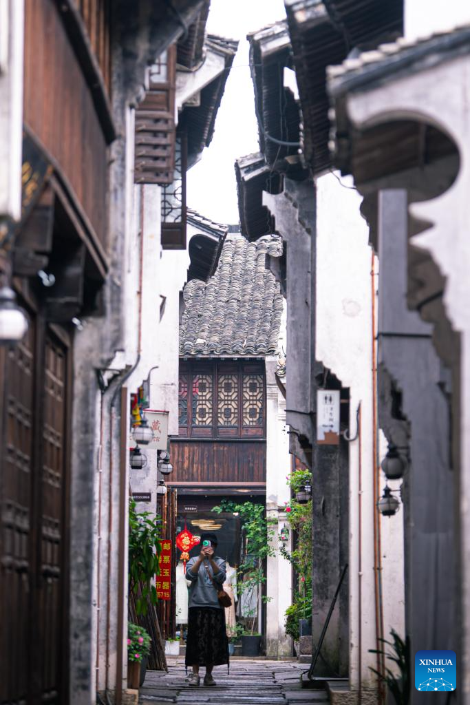 A man visits Yuehe historical area, Nanhu District, Jiaxing of east China's Zhejiang Province, April 26, 2024. (Xinhua/Huang Zongzhi)