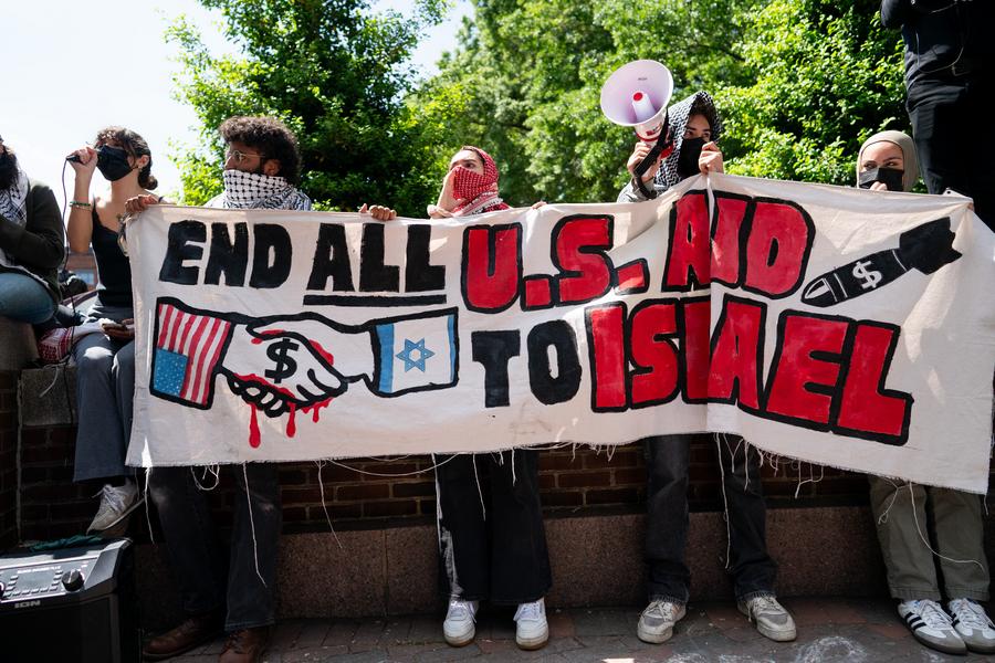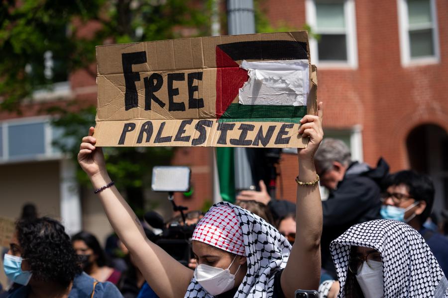 People participate in a pro-Palestinian demonstration at George Washington University in Washington, D.C., the United States, April 26, 2024. (Xinhua/Liu Jie)