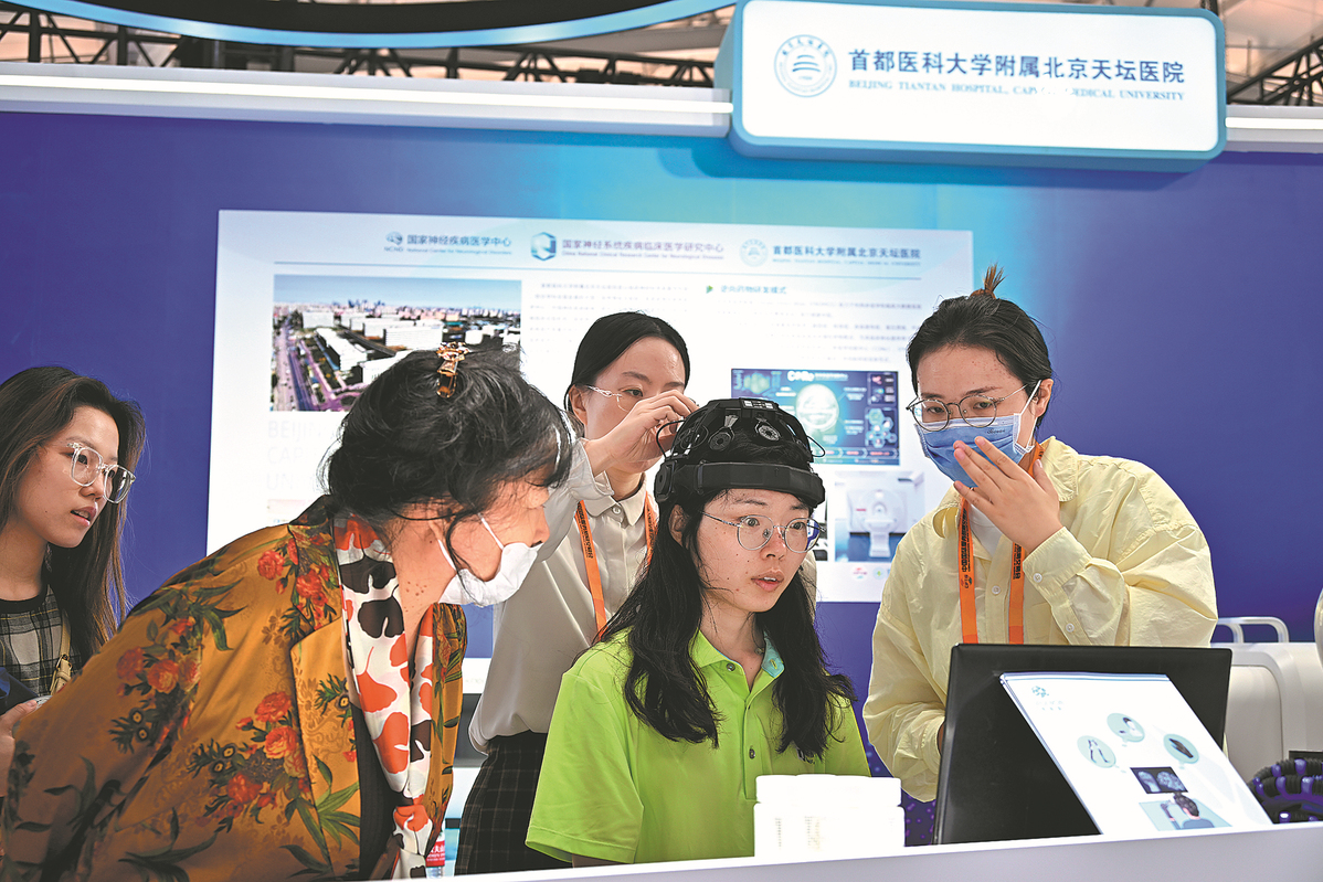 A visitor tried a brain-computer interface device during the China International Fair for Trade in Services in Beijing last year. LI XIN/XINHUA