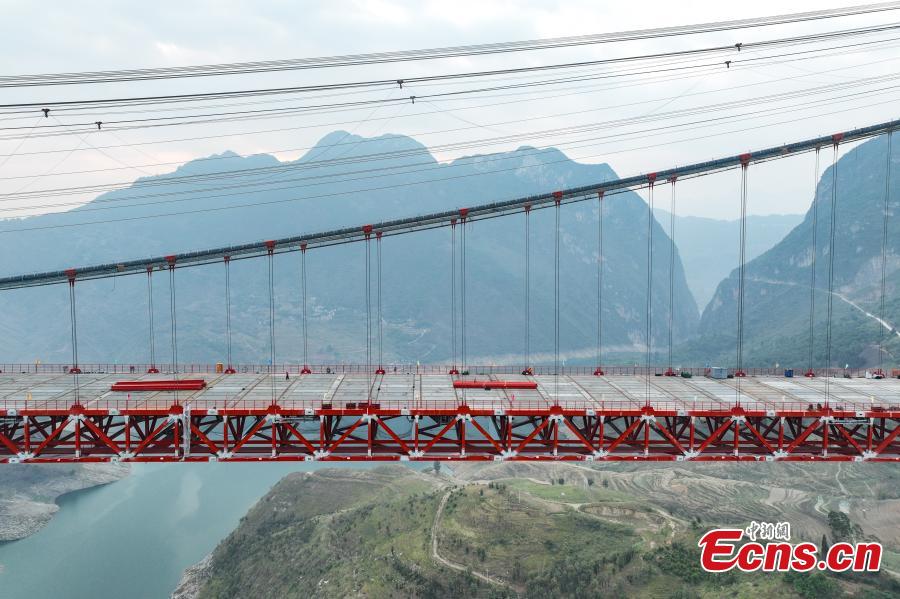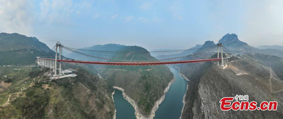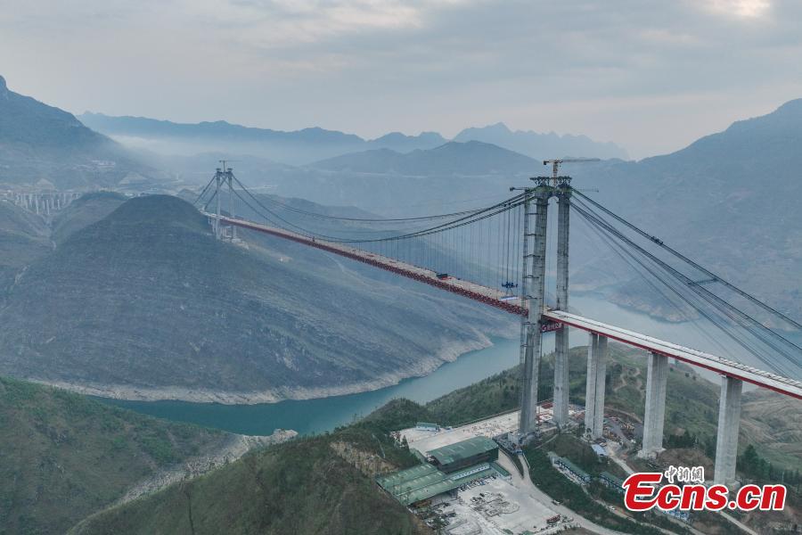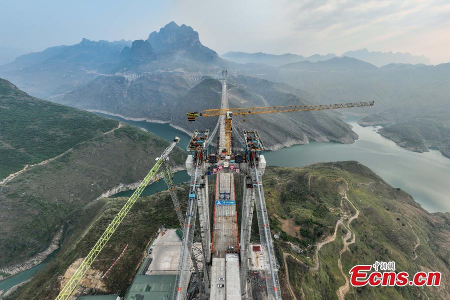 With a length of 1,849 meters and a span of 1,080 meters, the bridge was successfully connected on Sunday.