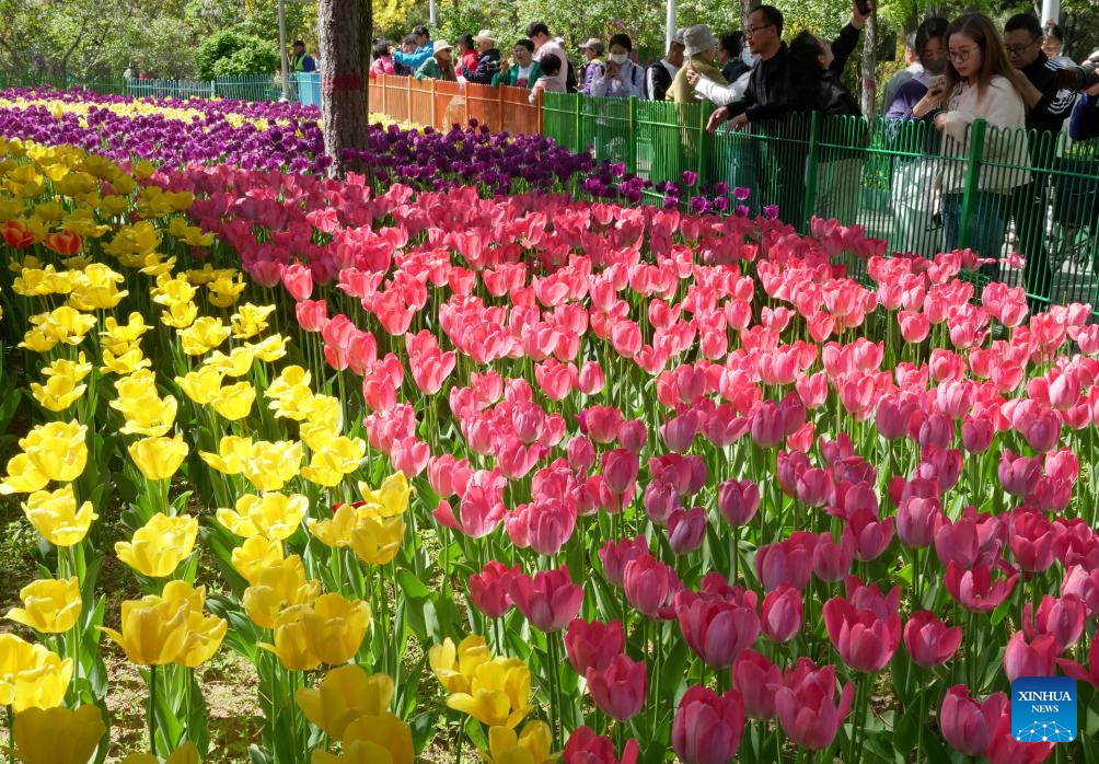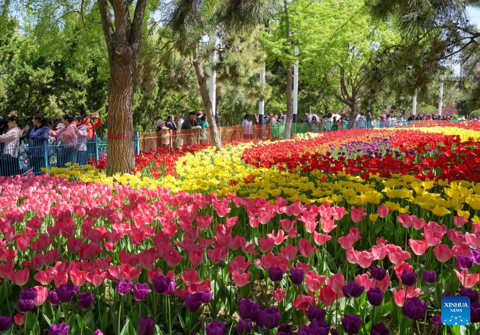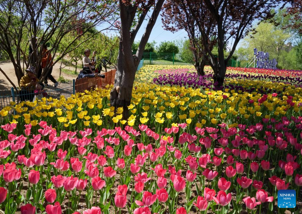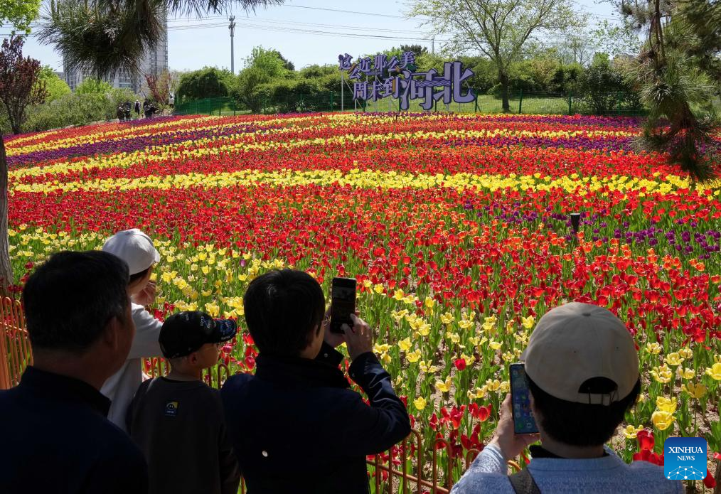 Tourists view tulips at a park in Qinhuangdao, north China's Hebei Province, April 30, 2024. (Xinhua/Yang Shiyao)