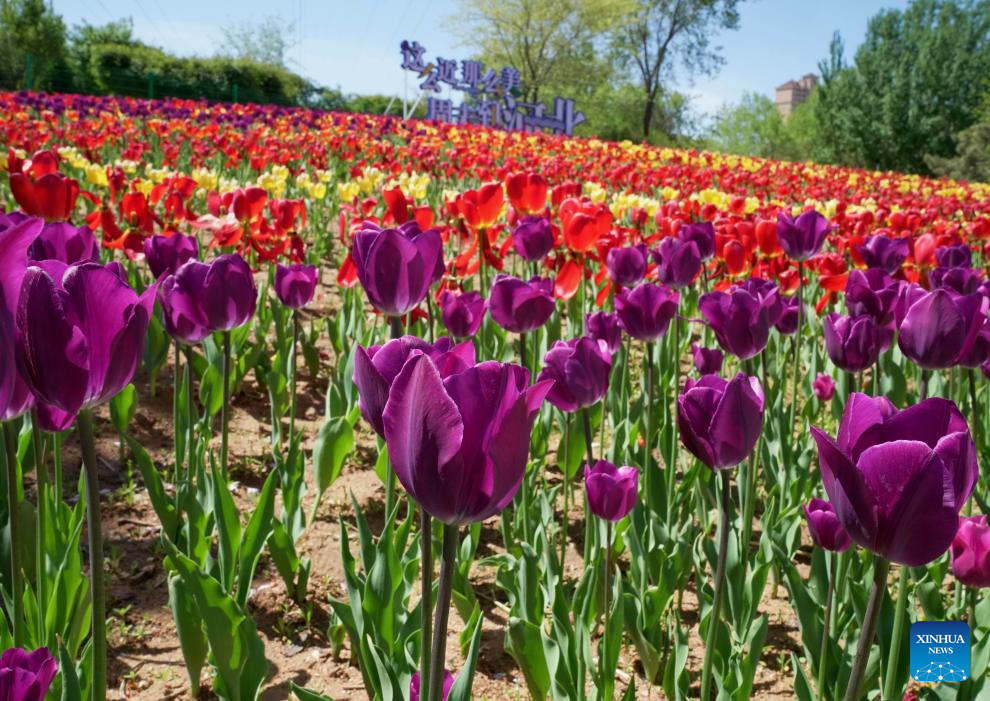 Tulips are pictured at a park in Qinhuangdao, north China's Hebei Province, April 30, 2024. (Xinhua/Yang Shiyao)