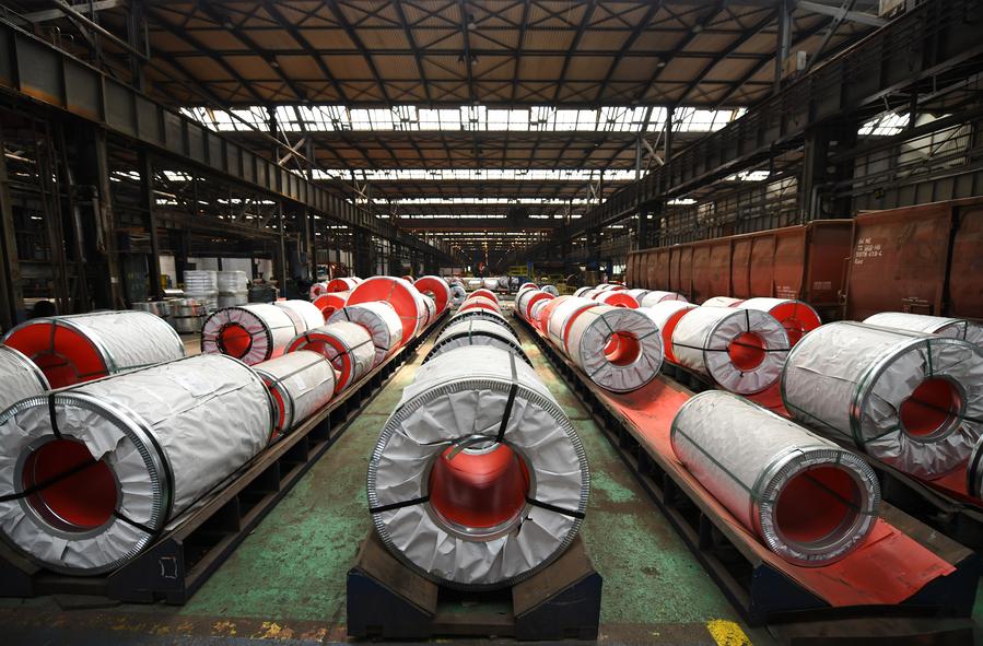 Steel coils are seen at the steelworks of HBIS Serbia in Smederevo, Serbia, May 5, 2023. (Xinhua/Ren Pengfei)