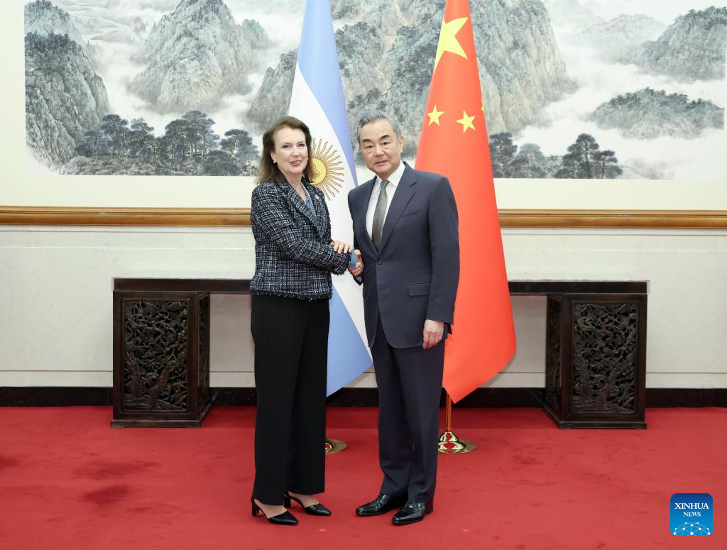 China is willing to take the opportunity of the 10th anniversary of the establishment of China-Argentina comprehensive strategic partnership this year, to jointly grasp the direction of bilateral relations, inject more certainty into the two sides' cooperation in various fields, and open up new prospects for the comprehensive strategic partnership between the two countries, Wang said.
