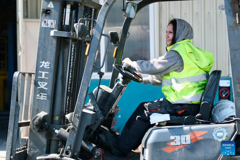 A worker operates a forklift at a smeltery of Serbia Zijin Copper DOO in Bor of Serbia, April 11, 2024. The city of Bor in Serbia is rich in copper resources. Zijin Mining Group built new and advanced production facilities in the Serbian company and set new standards for environment-friendly mining. (Xinhua/Zheng Kaijun)