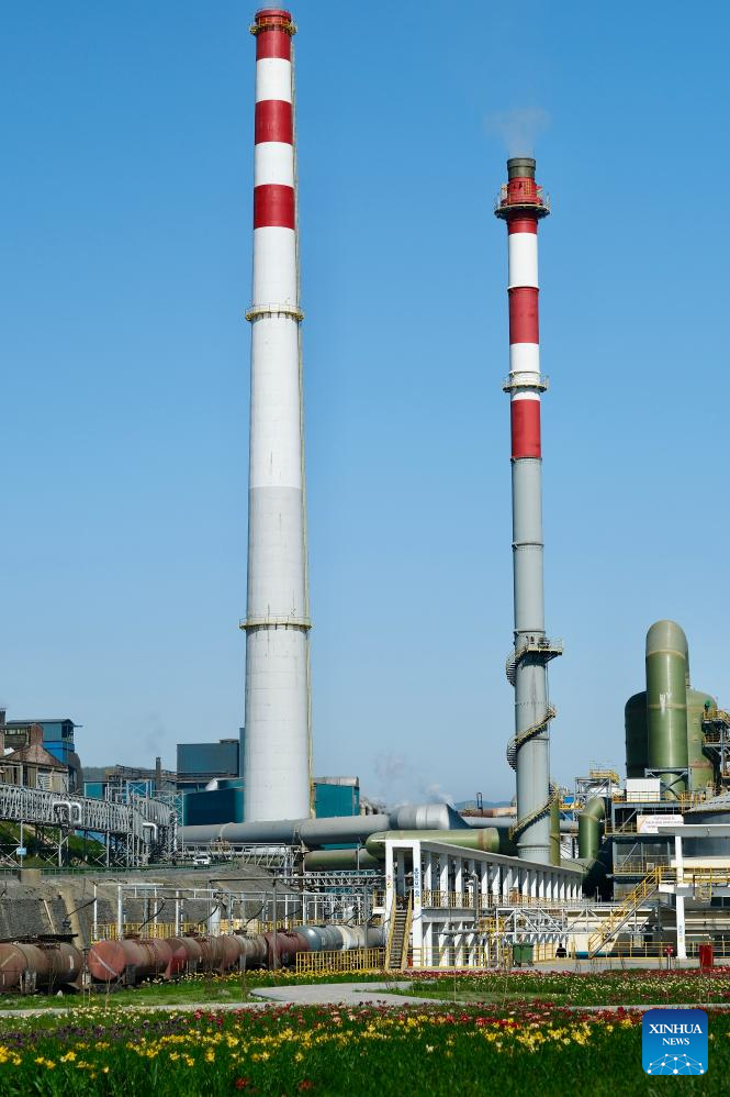 This photo taken on April 11, 2024 shows the view of the smeltery of Serbia Zijin Copper DOO in Bor, Serbia. The city of Bor in Serbia is rich in copper resources. Zijin Mining Group built new and advanced production facilities in the Serbian company and set new standards for environment-friendly mining. (Xinhua/Zheng Kaijun)
