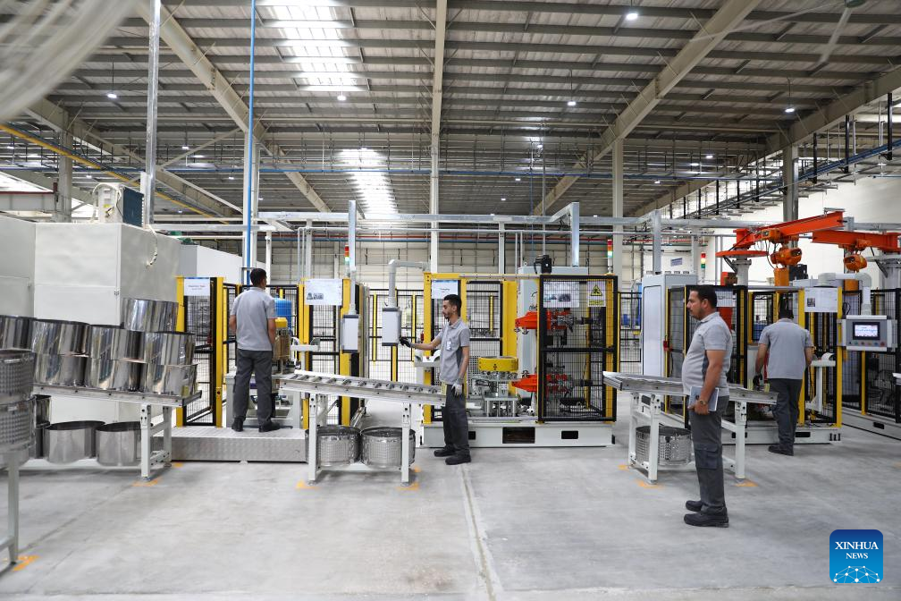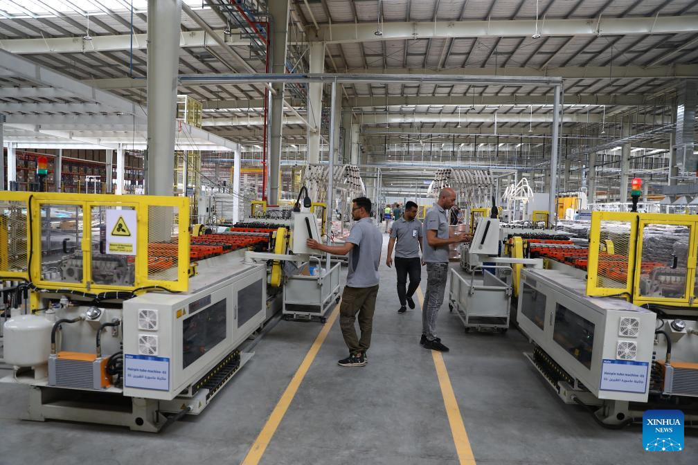 Laborers work at a factory of the Haier Egypt Ecological Park in the 10th of Ramadan City, Sharqia Province, Egypt, on May 1, 2024. China's home appliance giant Haier inaugurated Thursday its first industrial park in Egypt in 10th of Ramadan, a city northeast of Cairo. (Xinhua/Ahmed Gomaa)