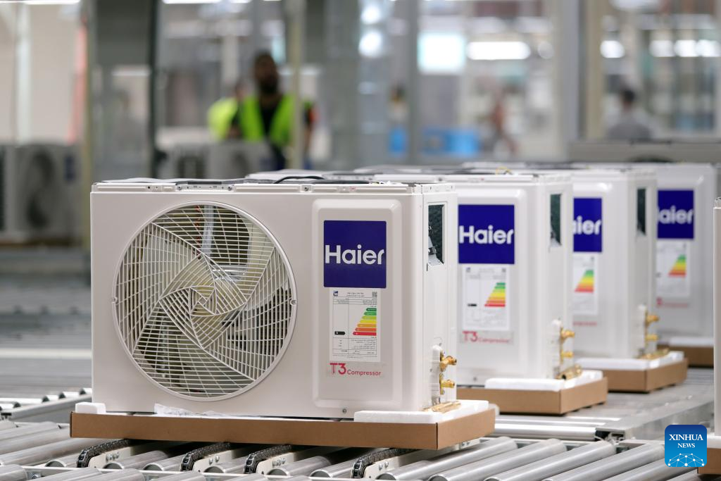 Unfinished air-conditioners are seen on a production line at a factory of the Haier Egypt Ecological Park in the 10th of Ramadan City, Sharqia Province, Egypt, on May 1, 2024. China's home appliance giant Haier inaugurated Thursday its first industrial park in Egypt in 10th of Ramadan, a city northeast of Cairo. (Xinhua/Ahmed Gomaa)