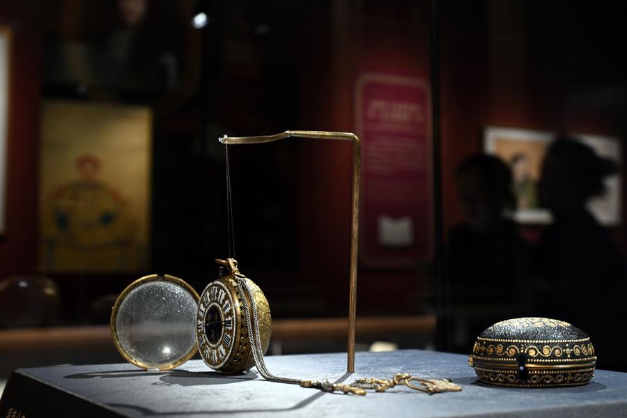 A pocket watch is displayed during an exhibition called "The Forbidden City and the Palace of Versailles: Exchanges Between China and France in the 17th and 18th Centuries" at the Palace Museum in Beijing, April 1, 2024. (Xinhua/Jin Liangkuai)