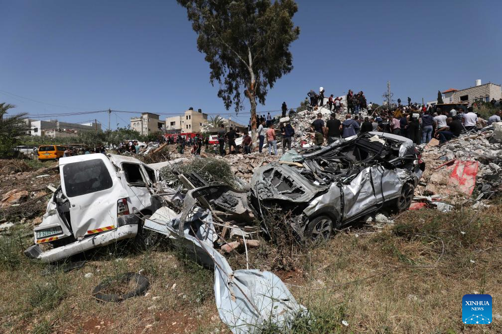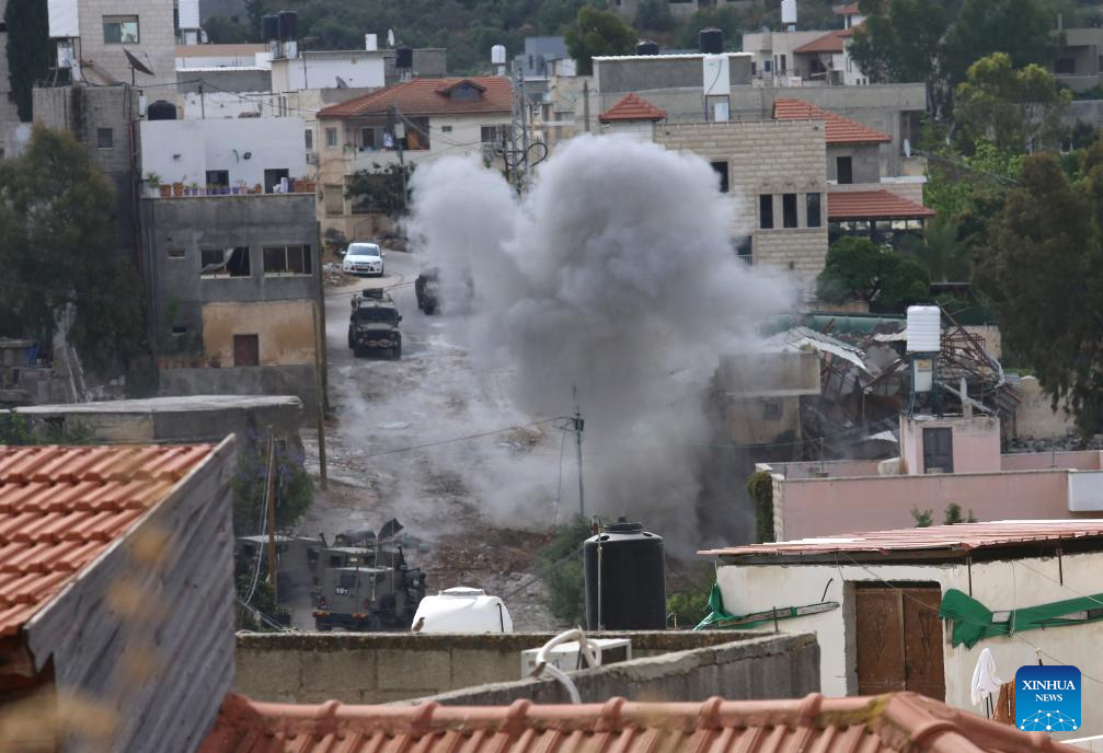 RAMALLAH, May 4 (Xinhua) -- At least six Palestinians were killed on Saturday in a military operation conducted by Israeli forces in Deir Al-Ghusoun, a town in the northern West Bank city of Tulkarm, according to Palestinian medical and security sources.