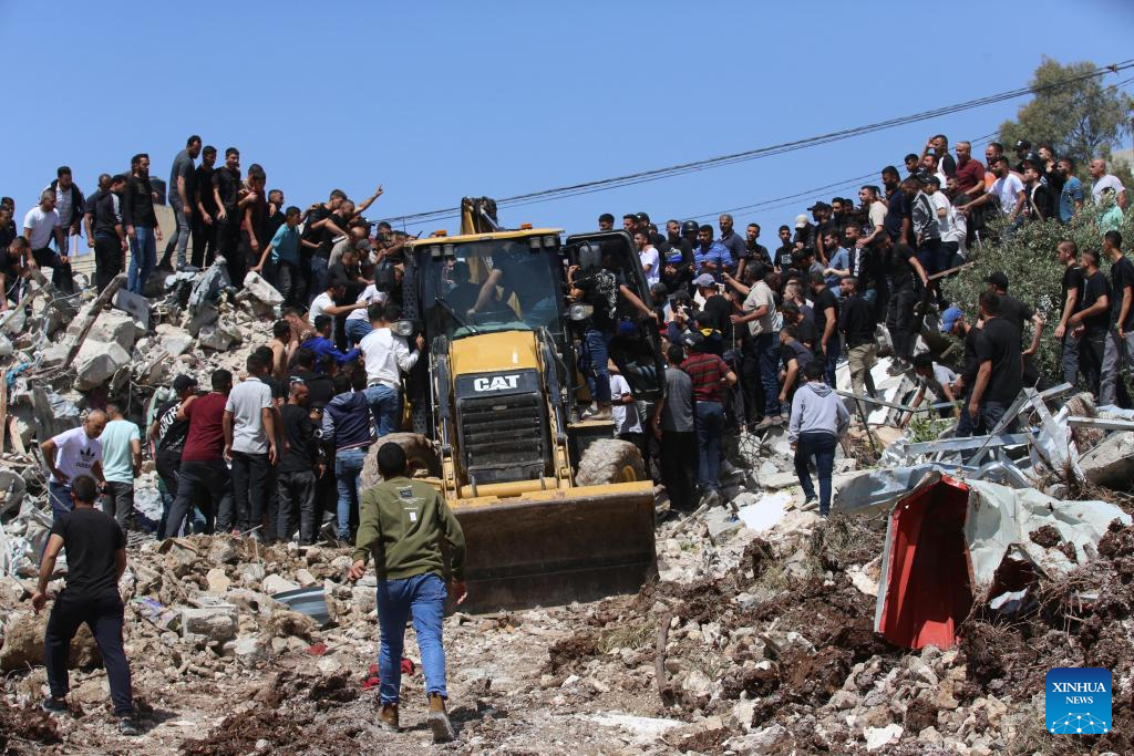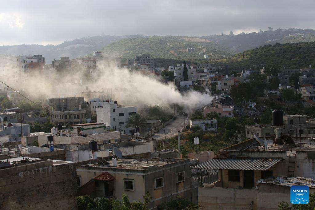 Security sources in Palestine said Israeli troops had encircled a residence in the town for more than 15 hours, during which multiple shells were launched at the house. (Photo by Nidal Eshtayeh/Xinhua)