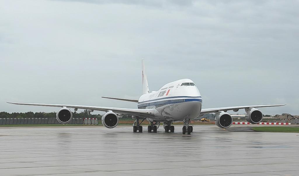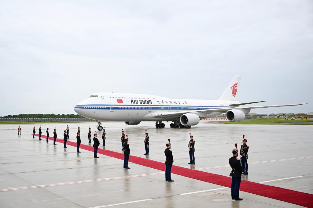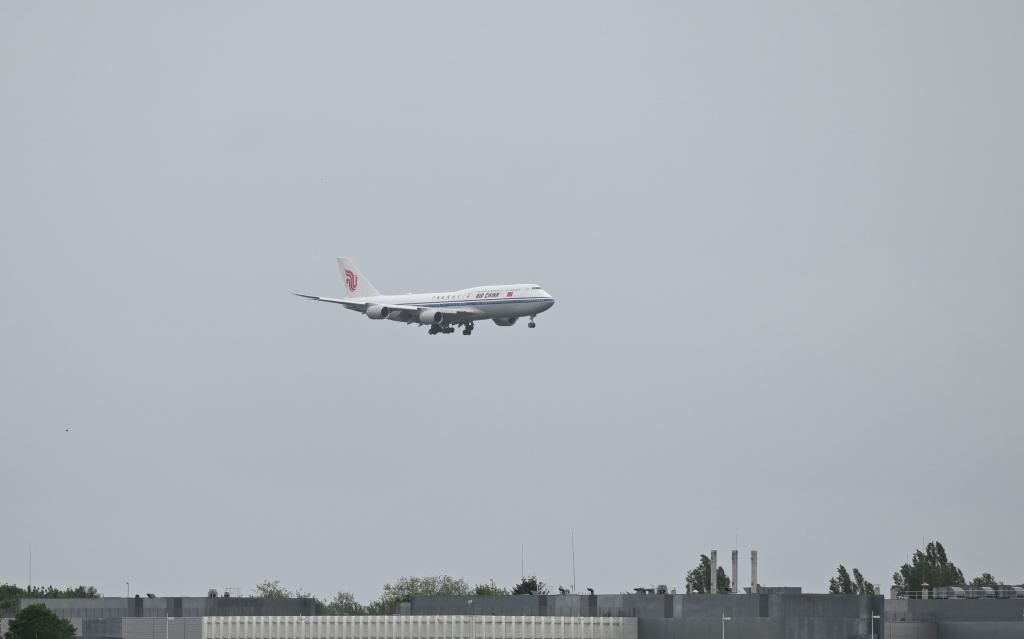Chinese President Xi Jinping's plane arrives in Paris, France, May 5, 2024. Xi arrived here Sunday for a state visit to France. (Xinhua/Xie Huanchi)